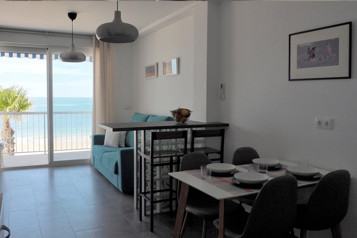 Apartamento de 2 dormitorios en primera línea del paseo marítimo de La Costilla, reformado y orientado al mar. Dispone de terraza amplia con vistas a la playa y a la bahía de Cádiz. Su ubicación en el centro de Rota permite acceso inmediato a zonas de ocio y restauración. Espacio luminoso, funcional y preparado para estancias completas o teletrabajo.