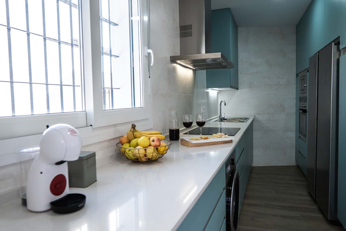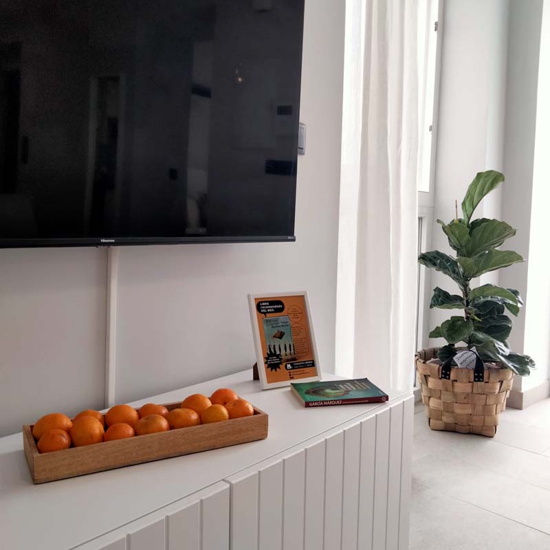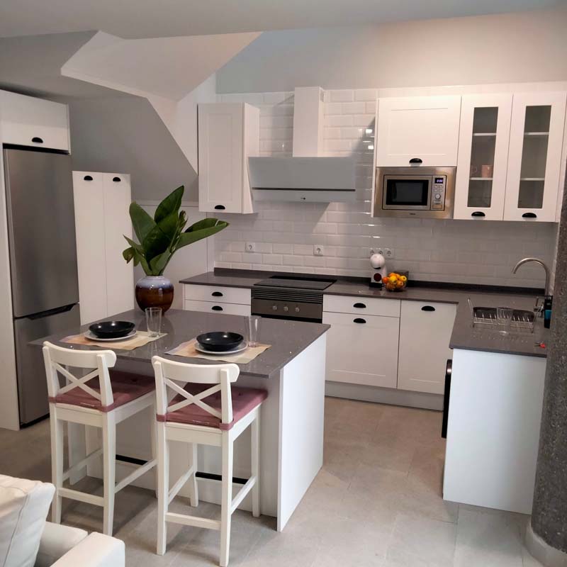 Aire acondicionado / calefacción · wifi · pantalla 40” · horno + microondas · lavadora / secadora · nevera doble · video portero · plancha · cafetera cápsulas