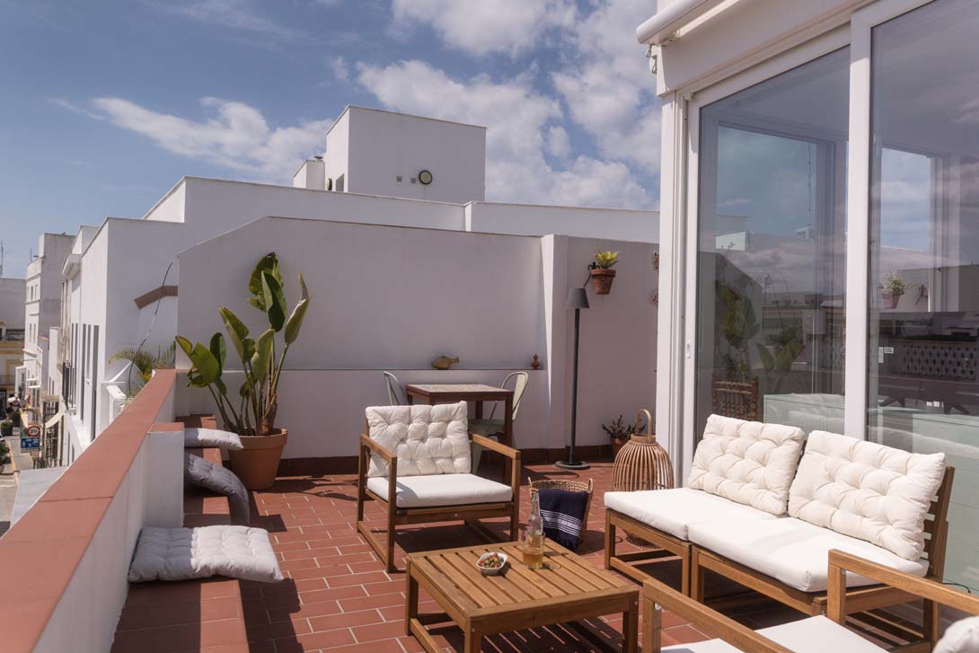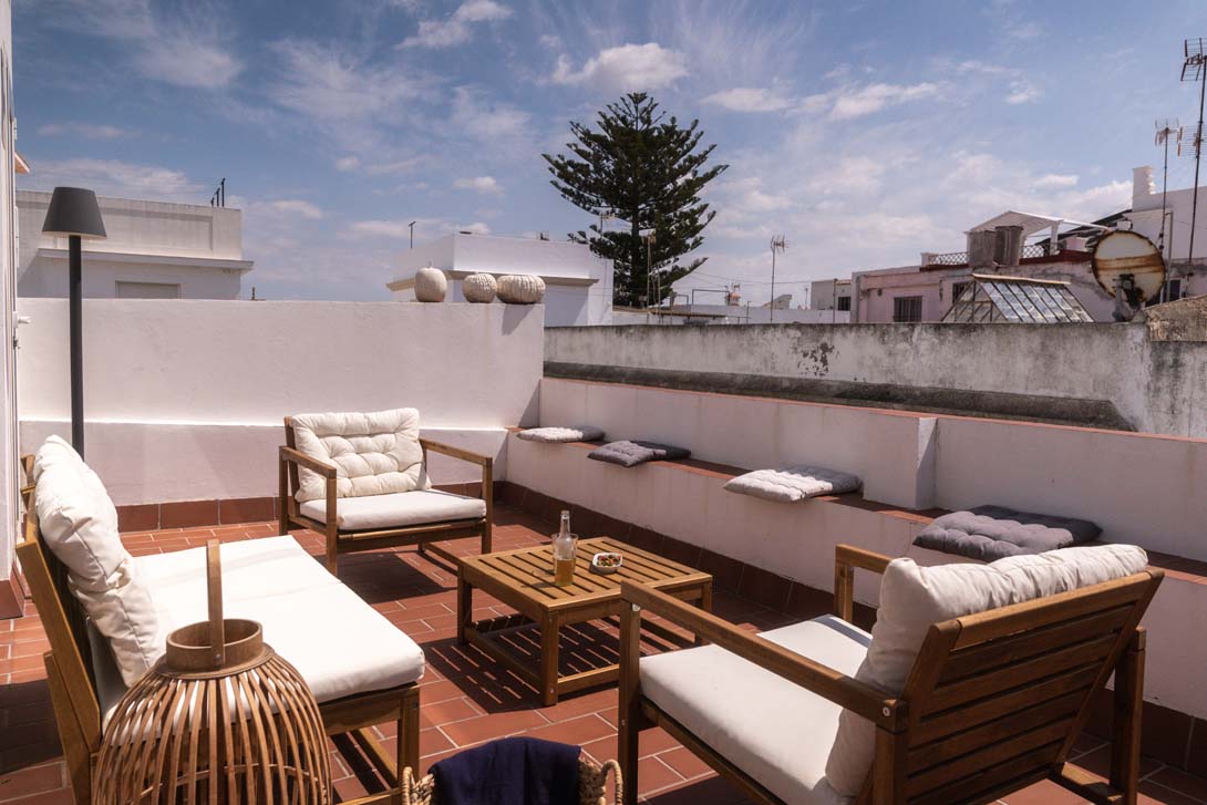 Apartamento en el centro de Rota con amplia terraza de 30 m². Espacio diseñado para disfrutar tanto del interior como del exterior. Incluye detalles diferenciales como dormitorio con paredes de cristal y decoración con obras de artistas locales. Ubicación cercana a playa, comercios y mercado.
